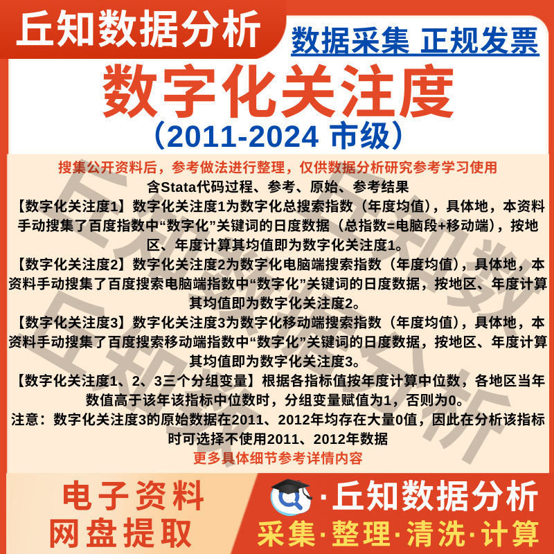 【普通数据】市级数字化关注度数据2024-2011搜索指数年度Excel表Stata代码Do