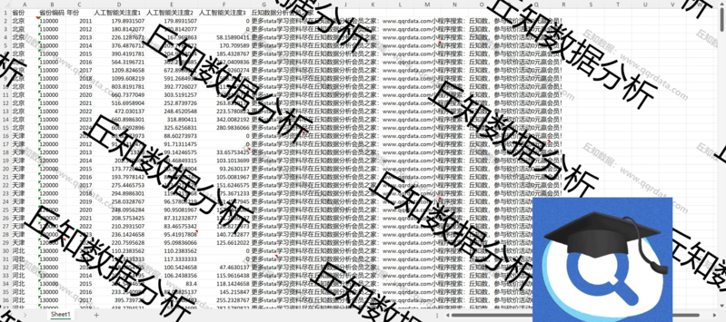 【普通数据】省级人工智能关注度数据2024-2011搜索指数年度Excel含Stata代码