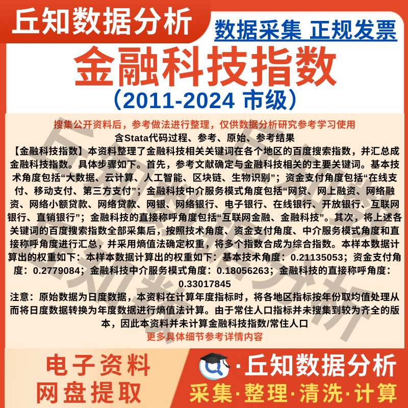 【普通数据】市级金融科技指数数据2024-2011搜索指数年度Excel Stata整理代码