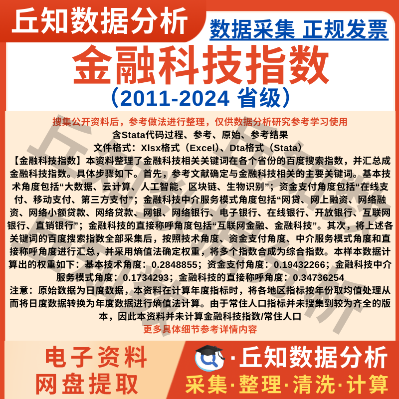 【普通数据】省级金融科技指数数据2024-2011搜索指数年度Stata整理结果