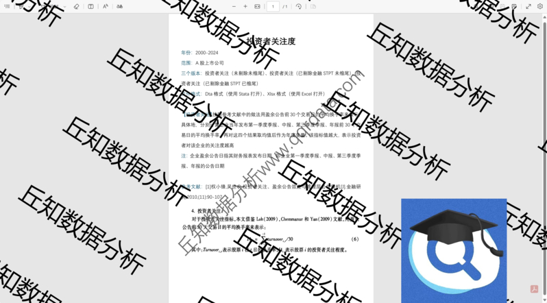 【普通数据】上市公司投资者关注度2024-2000年含Stata代码过程Excel结果