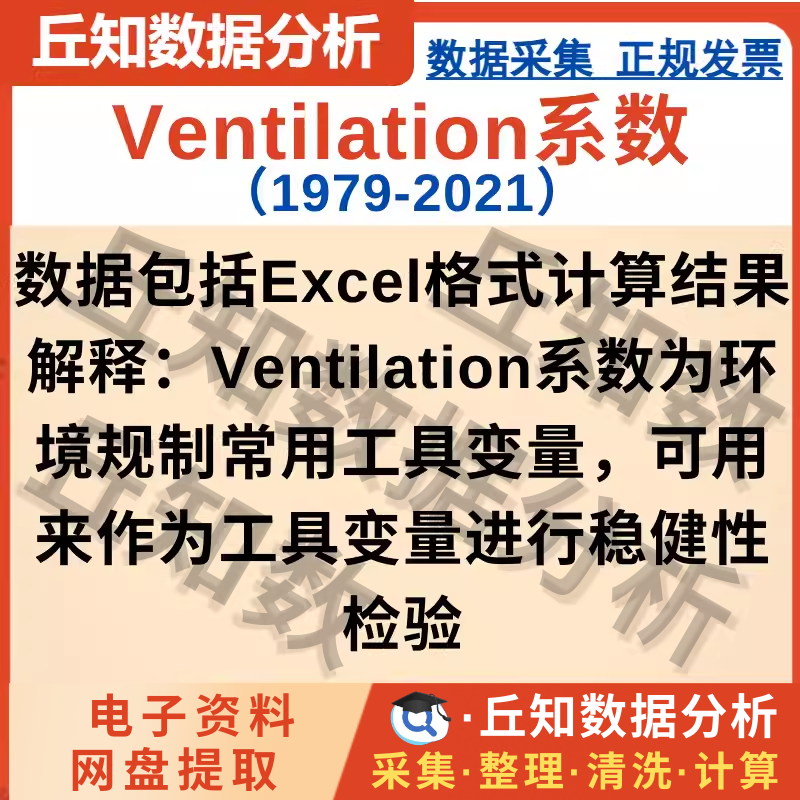 【普通数据】Ventilation系数为环境规制常用工具变量稳健性检验Excel格式
