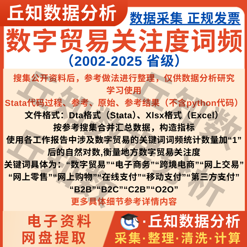 【普通数据】数字贸易关注度词频统计2025-2002省级文本分析数据Stata整理参考
