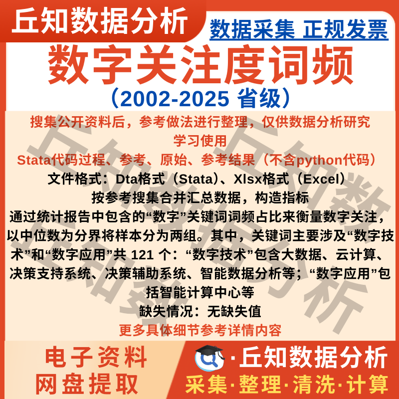 【普通数据】数字关注度词频2025-2002年省级原始数据为文本分析结果Stata整理