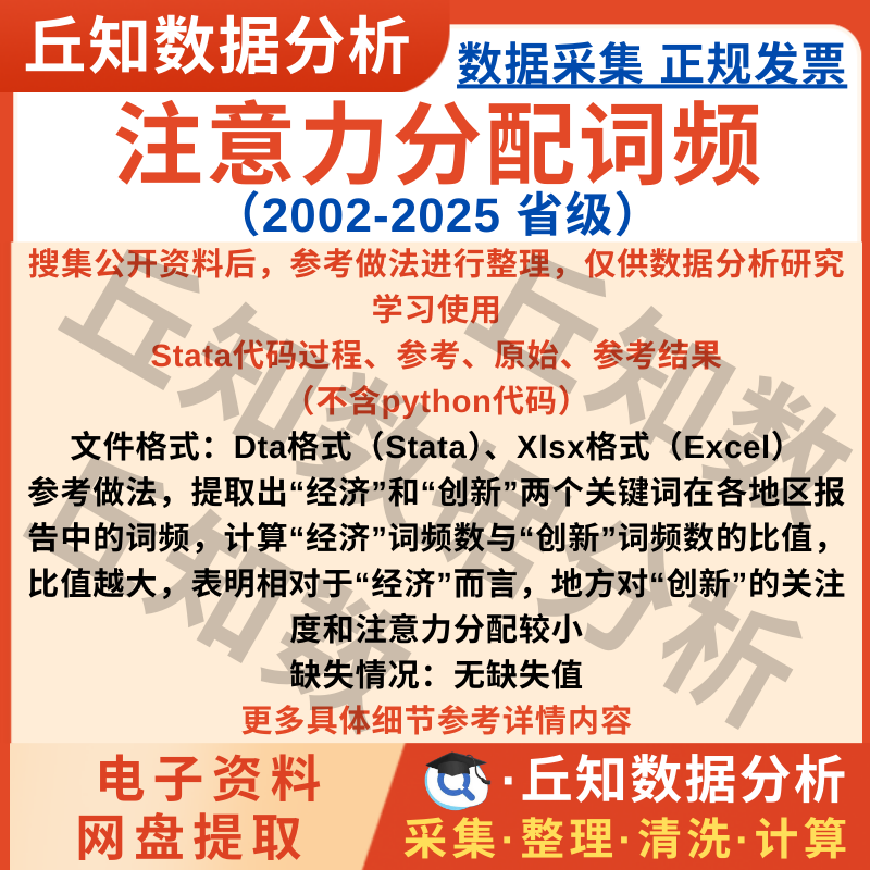 丘知数据分析会员之家,致力于提供高质量的社科数据搜集整理与分析服务,是国内领先的社科类数据服务商。在科研数据领域,我们认真对待每一位同学和老师的反馈,每年整理更新数千个变量指标,已累计服务数万科研工作者,在满足广大会员科研数据需求的同时全力提升售后服务质量,力求为大家提供高质量的社科数据服务! 在研究专题方面,我们搜集整理制作的数据专题包括但不限于:上市公司:管理层及治理、研发创新、投资融资、供应链、信息披露、会计审计税收、数字化、智能化、新质生产力、绿色发展、文本分析专题等;区域研究:空间计量、市场经济、科技创新、绿色发展、数字化、智能化、新质生产力、文本分析专题等。 丘知数据分析会员之家,每年更新推送近千个数据栏目,所有数据均支持单独购买,开通会员则可享受每日免费下载次数,欢迎老师同学们浏览订阅!如果您有定制需求也可以联系我们。