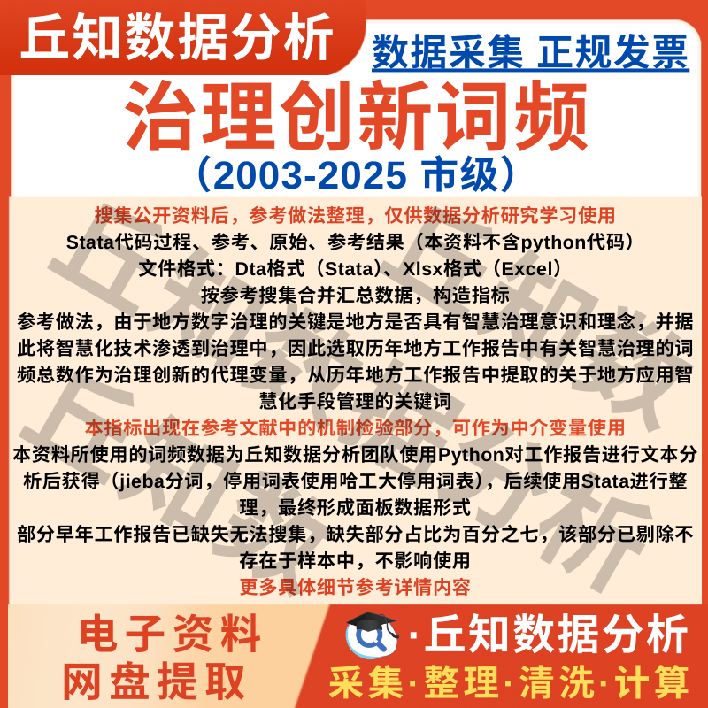 【普通数据】治理创新词频统计2025-2003市级原始数据为文本分析结果Stata整理