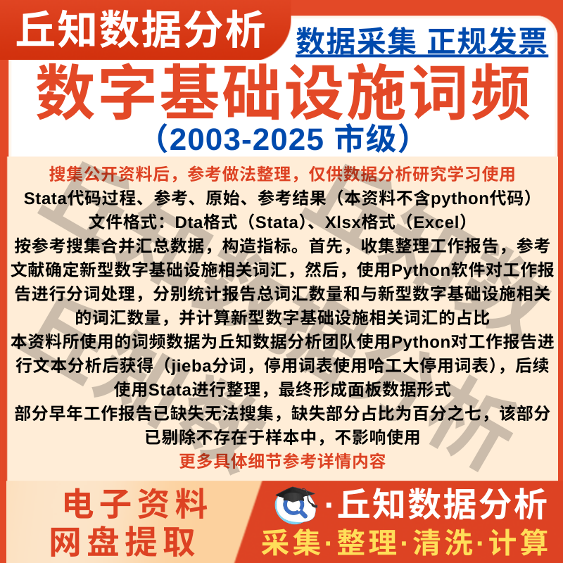 【普通数据】数字基础设施词频2025-2003数据市级文本分析结果Stata表格含说明