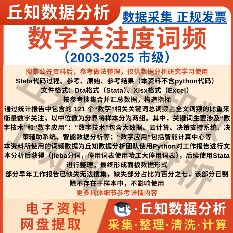 【普通数据】数字关注度词频2025-2003年市级数据Stata整理包含说明文件及参考
