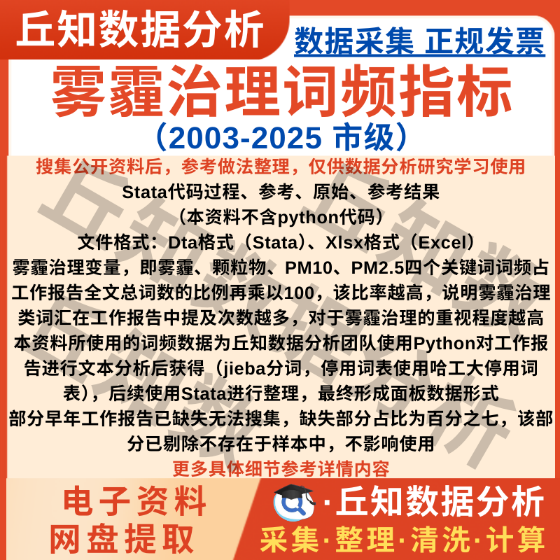 【普通数据】雾霾治理词频市级数据2025-2003工作报告文本分析结果Stata Excel