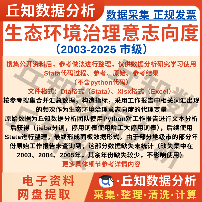 【高级数据】地级市生态环境意志向度2025-2003年数据词频统计结果含Stata版本