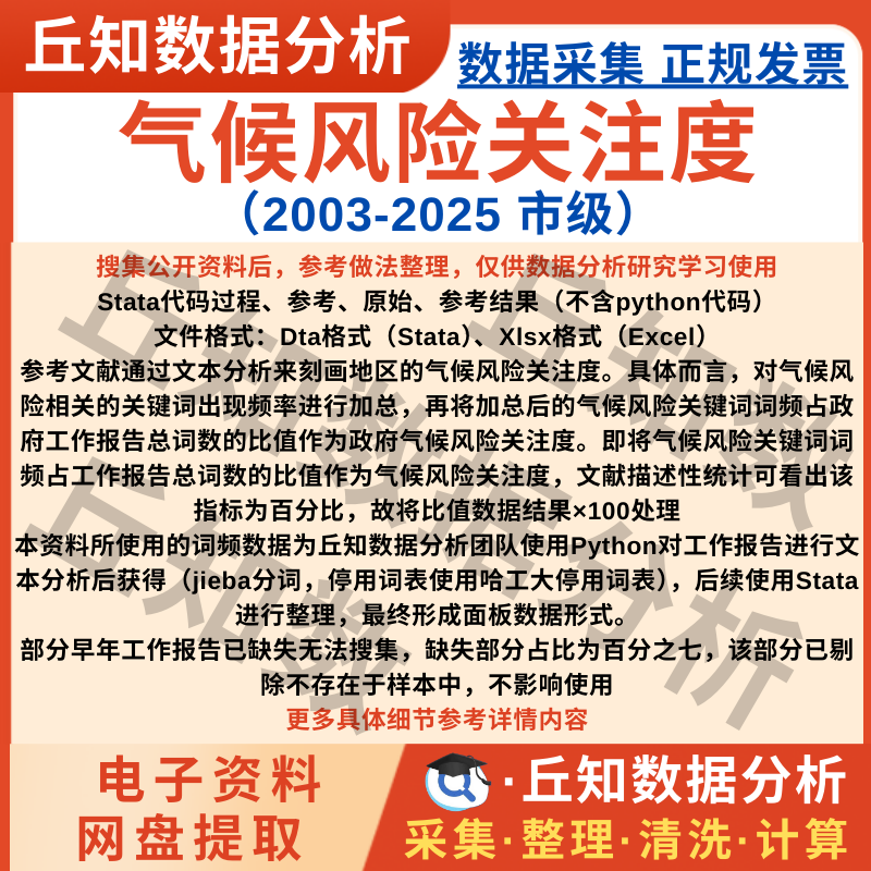 【普通数据】气候风险关注度市级数据2025-2003工作报告文本分析Stata表 Excel