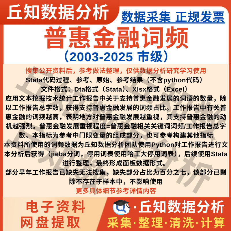【高级数据】普惠金融词频市级数据2025-2003年工作报告文本分析子指标Stata表