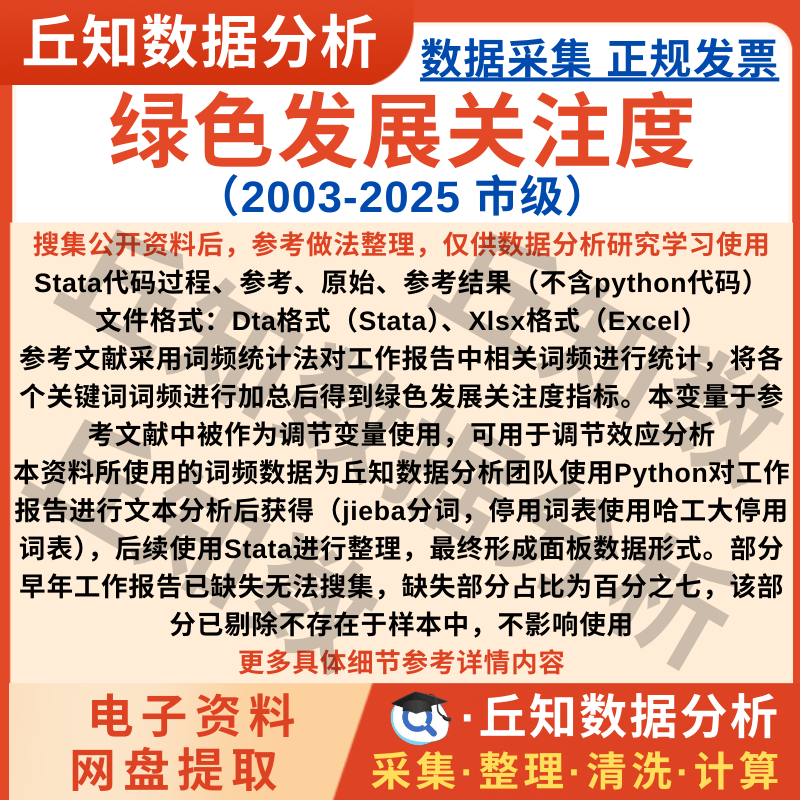 【普通数据】绿色发展关注度市级数据2025-2003年工作报告文本分析调节Stata表