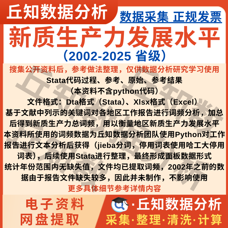 【普通数据】新质生产力发展水平指标2025-2002词频结果Stata表 Excel省级数据