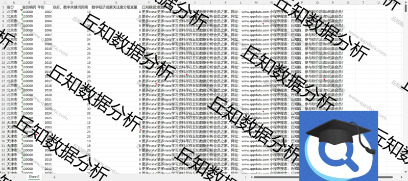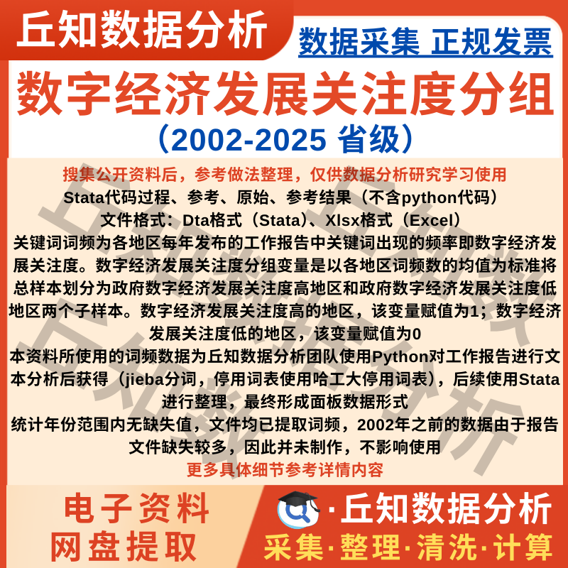 【普通数据】数字经济发展关注度分组数据2025-2002词频数据Stata表 Excel省级