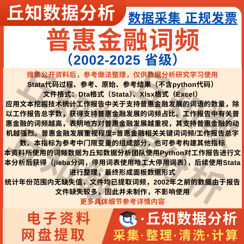 【高级数据】普惠金融词频省级数据2025-2002年工作报告文本分析子指标Stata表