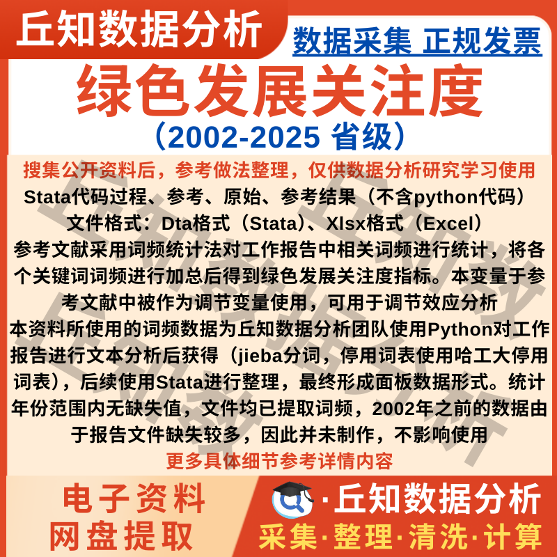 【普通数据】绿色发展关注度省级数据2025-2002年工作报告文本分析调节Stata表