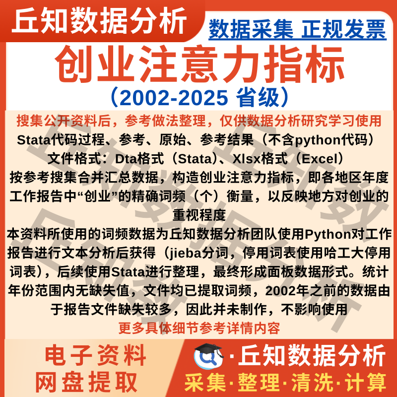 【普通数据】创业注意力指标2025-2002年省级原始数据为文本分析结果Stata整理