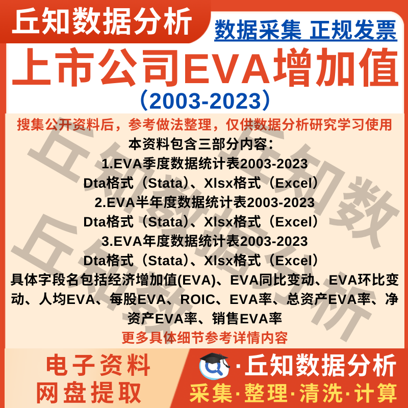 【普通数据】上市公司EVA经济增加值2023-2003年度半年度季度面板Stata数据表