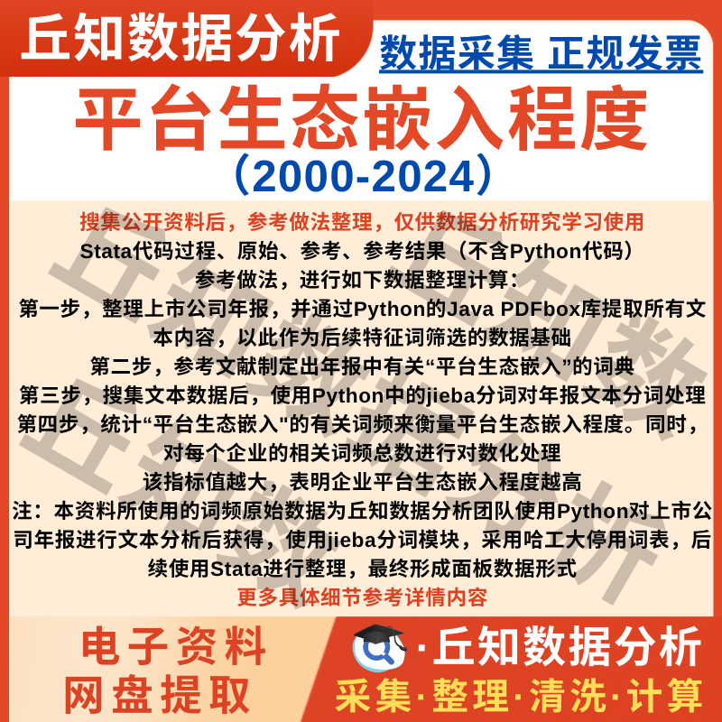 【普通数据】平台生态嵌入程度2024-2000上市公司年报文本分析数据含Stata代码