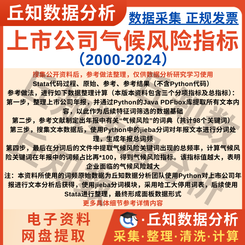 【普通数据】上市公司气候风险指数2024-2000含分项结果年报词频StataExcel