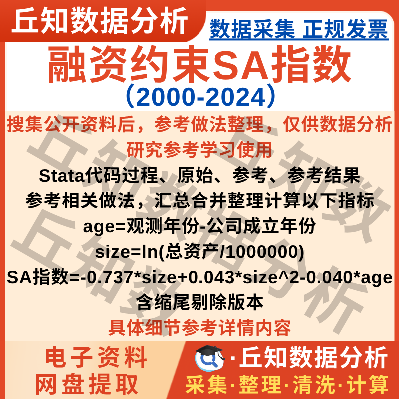 【普通数据】融资约束SA指数2024-2000上市公司含Stata代码Do文档剔除缩尾版本