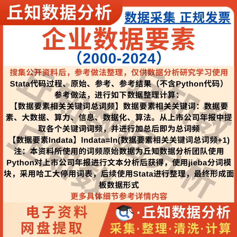 【普通数据】企业数据要素2024-2000年数据上市公司含Stata/Excel格式词频结果