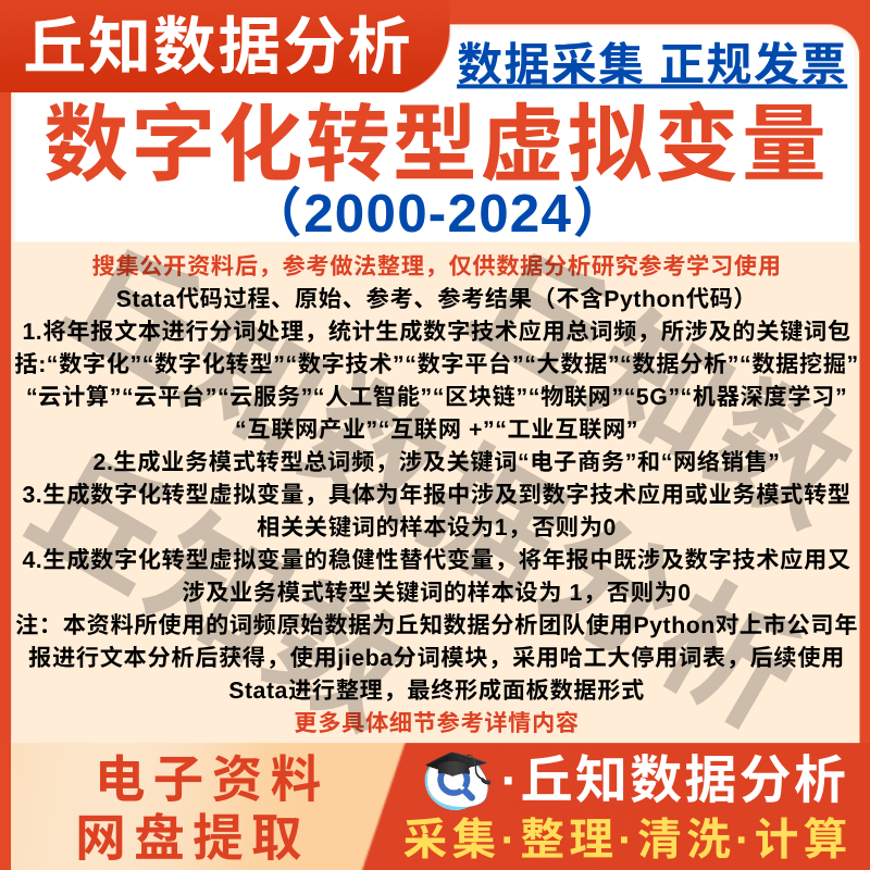 【普通数据】数字化转型虚拟变量2024-2000上市公司年报词频分析Stata整理数据