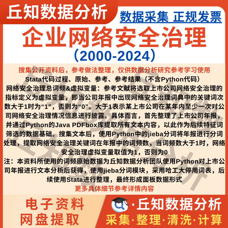 【高级数据】企业网络安全治理2024-2000年上市公司数据含剔除版本Stata整理Do