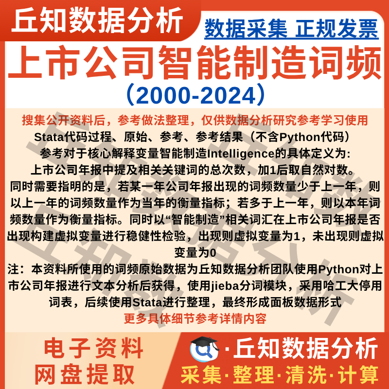【高级数据】上市公司智能制造2024-2000年报词频文本数据结果含Stata整理代码