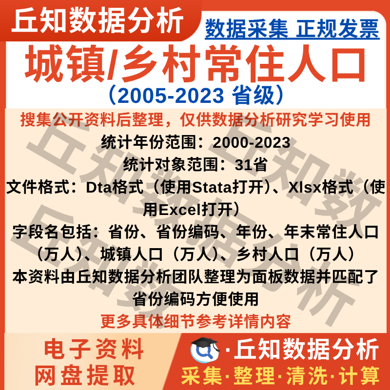 【普通数据】各省城镇乡村常住人口2023-2005年数据Excel表格Stata面板统计表