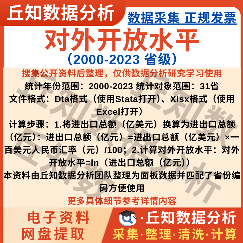 【普通数据】省级对外开放水平2023-2000年数据Excel表Stata统计数据面板整理