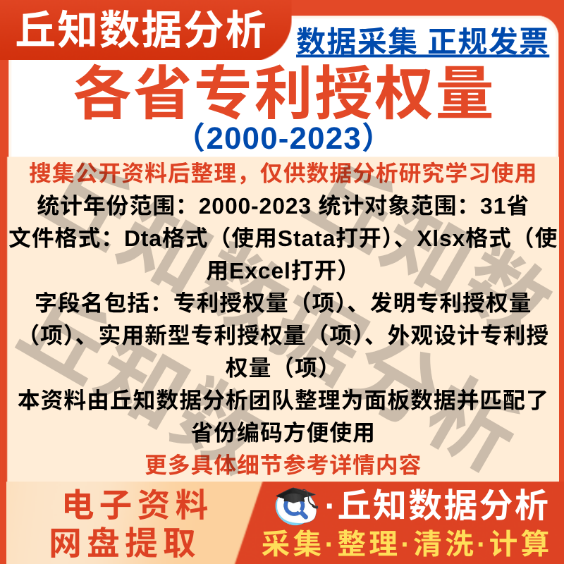 【普通数据】各省专利授权量2023-2000年数据发明实用新型外观设计Stata表面板