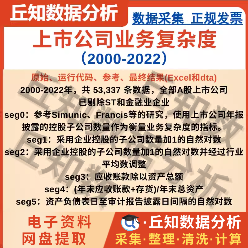 【普通数据】上市公司业务复杂度数据2000-2022原始代码参考结果(Excel和dta)
