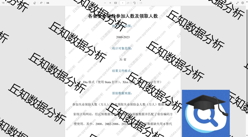 【普通数据】各省失业保险参加领取人数2023-2000年面板数据stata格式excel表