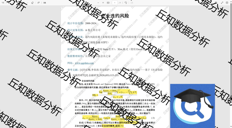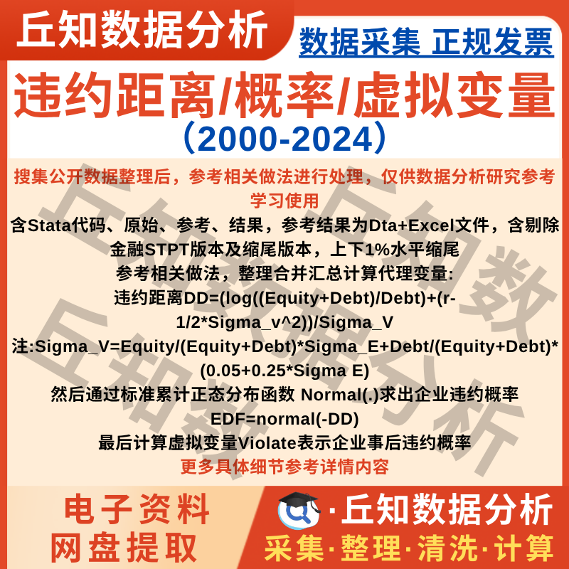 【普通数据】企业违约风险距离/概率/事后2024-2000数据Stata计算代码上市公司