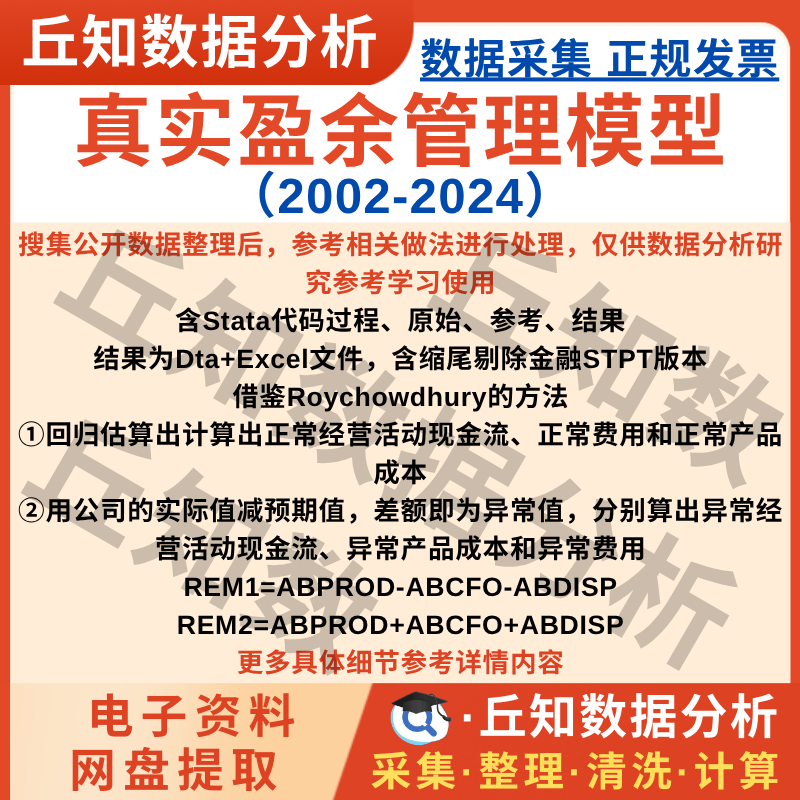 【普通数据】真实盈余管理模型2024-2002含stata代码上市公司数据企业Excel