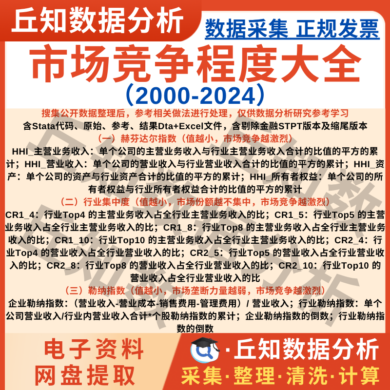 【普通数据】市场竞争程度数据大全2024-2000赫芬达尔、勒纳指数、行业集中度