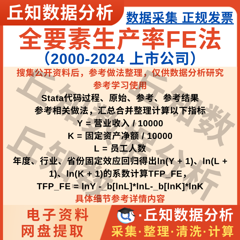 【普通数据】企业全要素生产率FE法2024年版Stata代码上市公司数据25/7/02更新