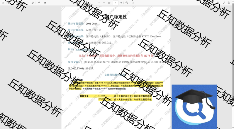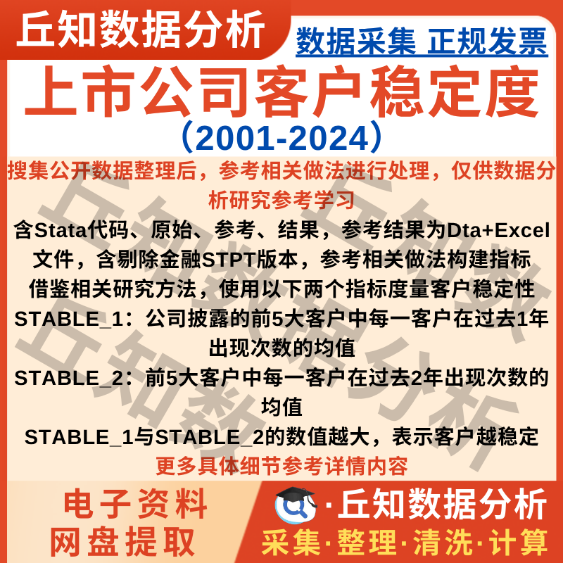 【普通数据】上市公司客户稳定度2024-2001年数据含stata代码Excel结果含剔除