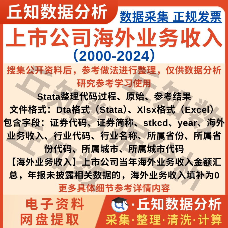 【普通数据】企业海外业务收入2024-2000年数据整理含Stata代码上市公司Excel