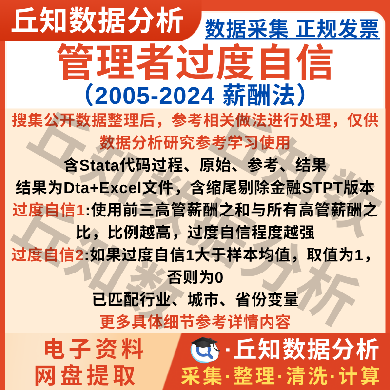 【普通数据】管理者过度自信2024-2005上市公司数据dta和excel格式含stata代码