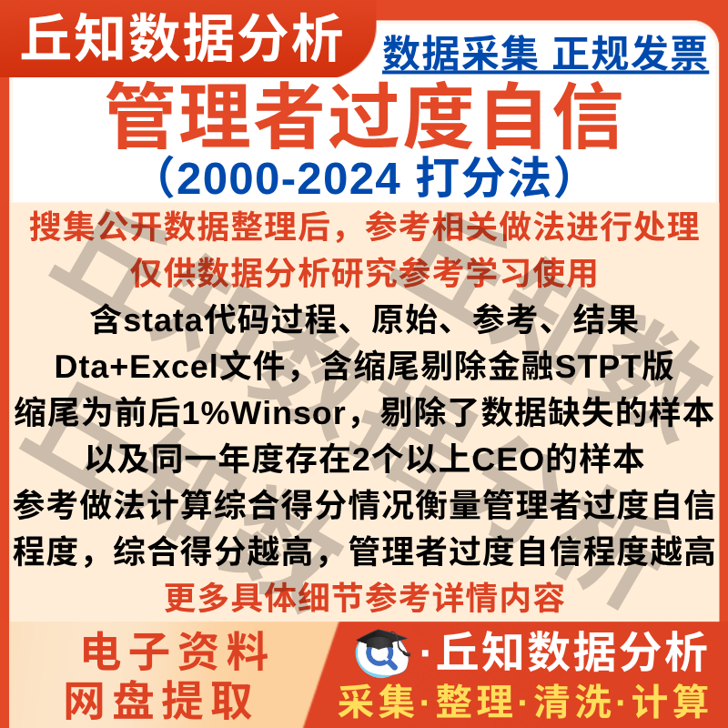【普通数据】管理者过度自信2024-2000上市公司数据Stata代码Excel结果含剔除