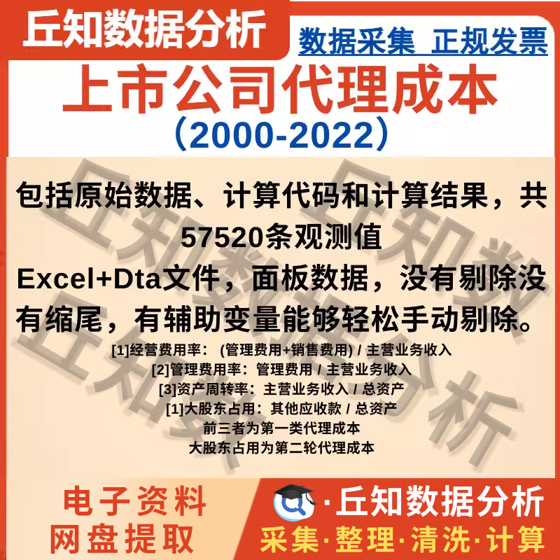 【普通数据】上市公司代理成本数据2000-2022,包含原始数据处理代码Excel+Dta