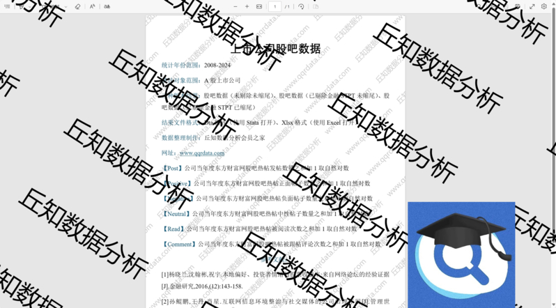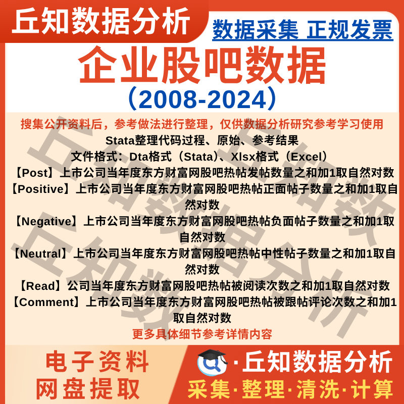 【普通数据】上市公司股吧年度数据2024-2008整理帖子数阅读评论数含Stata代码