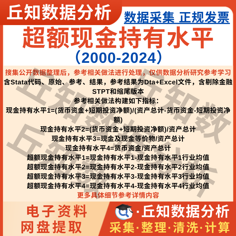 【普通数据】超额现金持有水平2024-2000上市公司数据stata计算代码过程Excel