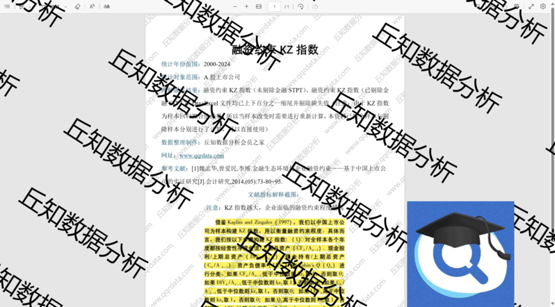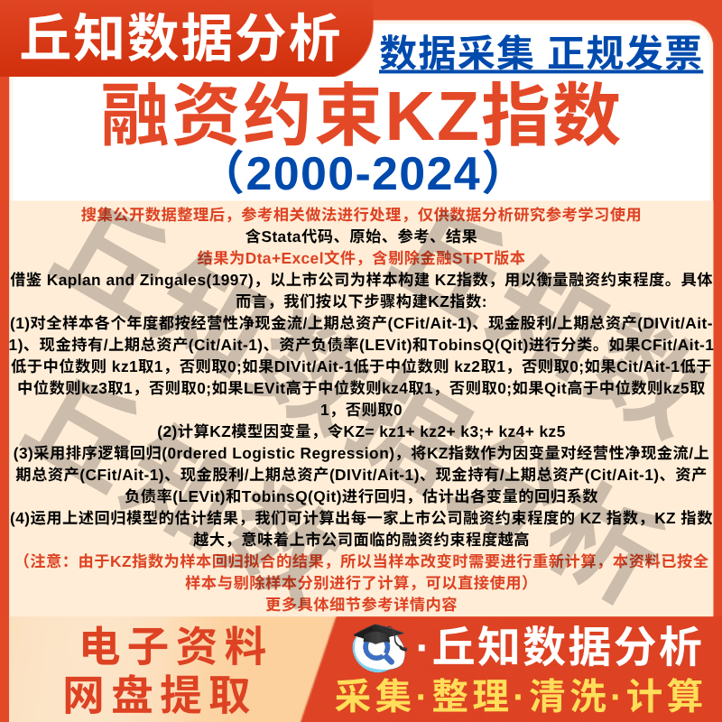 【普通数据】融资约束KZ指数2024-2000上市公司数据Stata代码Excel剔金融STPT