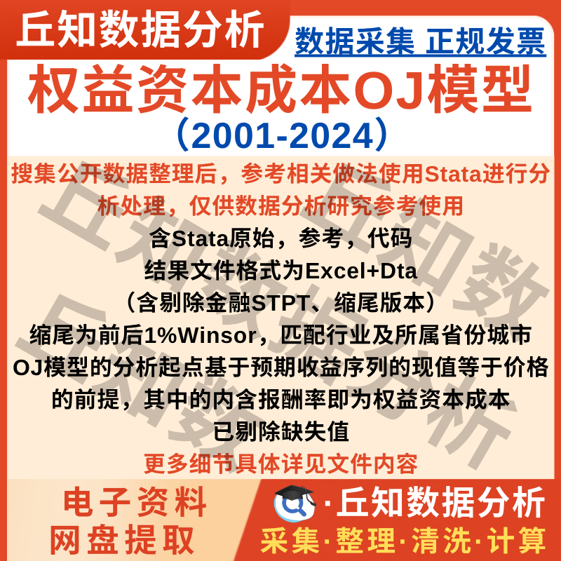 【普通数据】权益资本成本OJ模型2024-2001数据上市公司含stata代码Excel结果