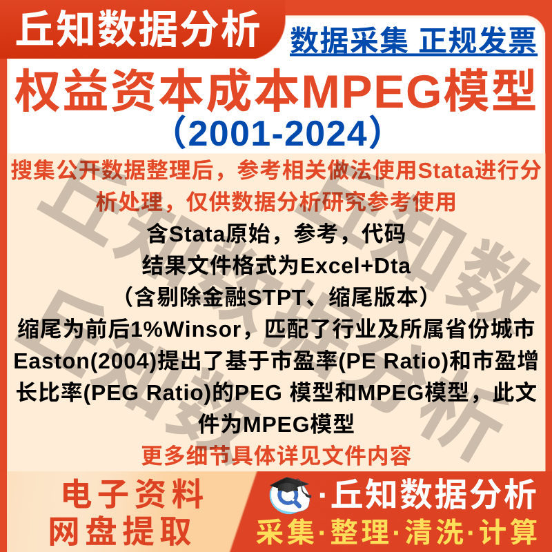 【普通数据】权益资本成本MPEG模型2024-2001上市公司数据stata代码Excel结果