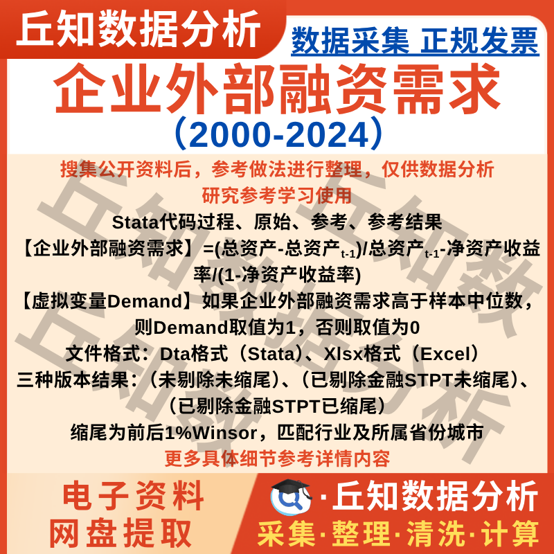 【普通数据】企业外部融资需求2024-2000数据含高低分组变量Stata上市公司异质